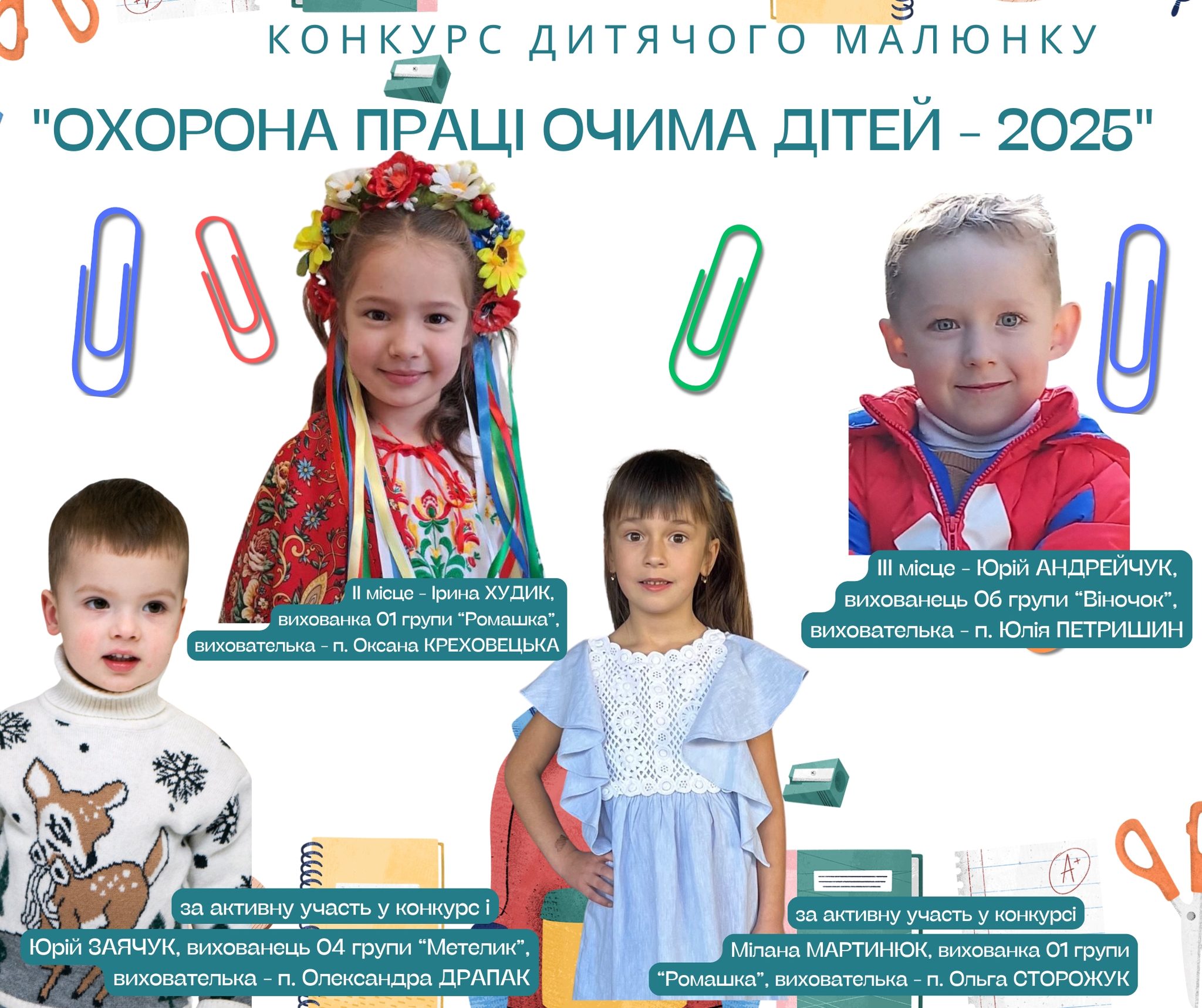 Ваші малюнки – це не лише яскраві творчі роботи, а й важливий внесок у формування культури безпеки праці. Адже безпека на робочому місці починається з дитячого усвідомлення її важливості.