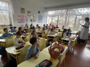 З учнями 1-Б класу медсестрою з дієтичного харчування було проведено інформаційно-просвітницький захід, щодо формування навичок корисного харчування та збереження здоров’я учнів. А також про роль збалансованого харчування в закладі освіти, його вплив на успішність і добробут дітей.