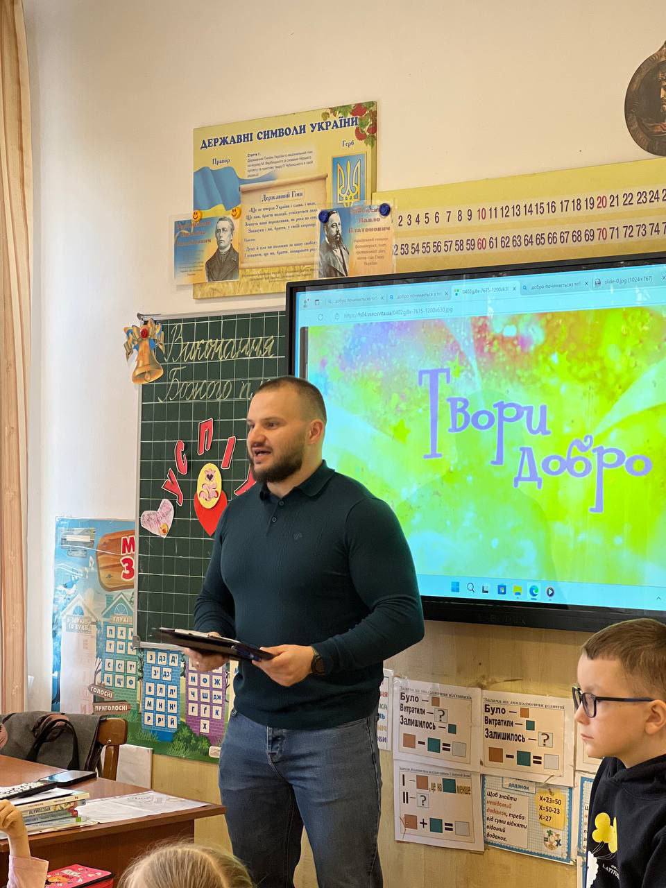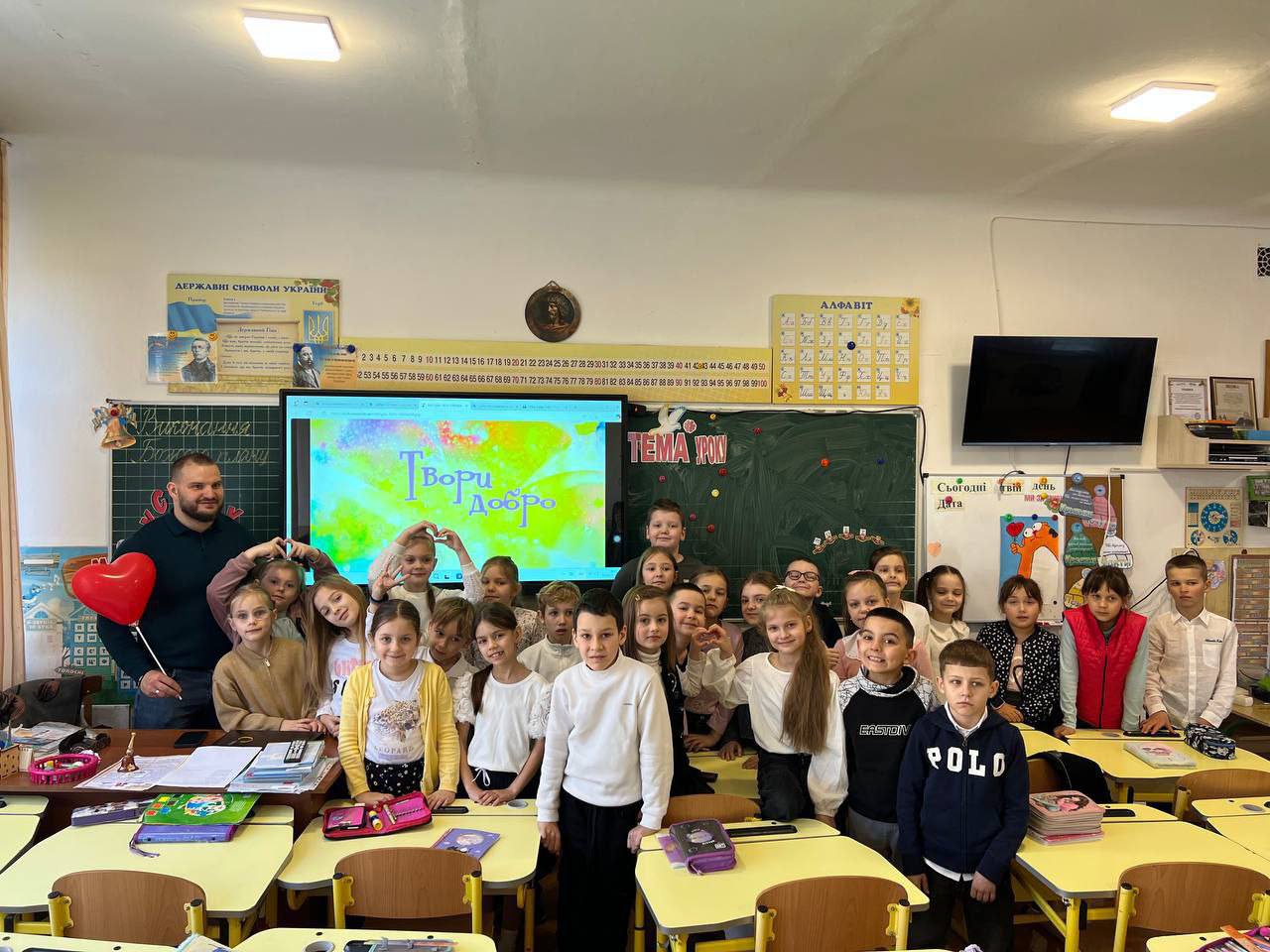 Сьогодні учні 2-Б класу та Василь Стримбіцький (батько учня) мали можливість порозмірковувати над темою “Твори добро” .